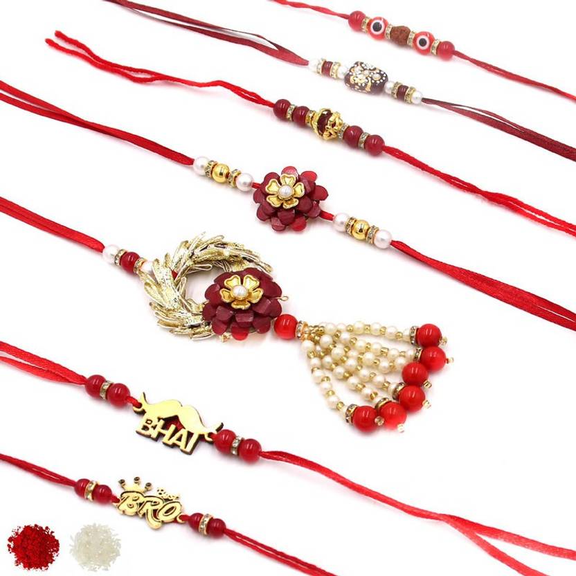 QUVYARTS Bhaiya Bhabhi Rakhi2022_K_022 Assorted Rakhi, Chawal Roli Pack Set (6 Rakhi, 1 Lumba)