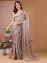 QVIDYA Solid/Plain Bollywood Organza, Silk Blend Saree (Grey)