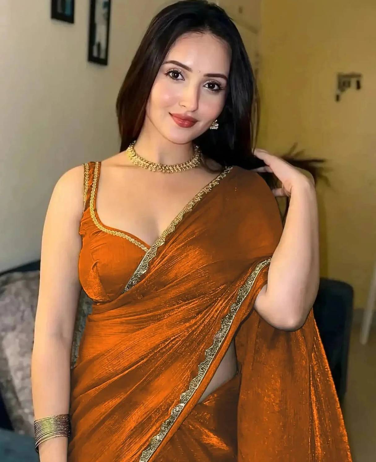 QVIDYA Solid/Plain Bollywood Organza, Silk Blend Saree (Purple)