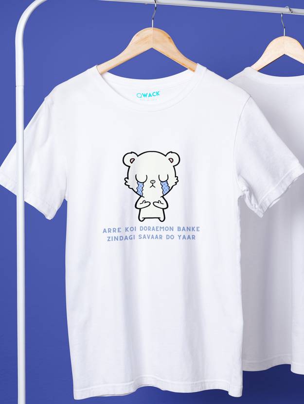 Men Printed Round Neck Pure Cotton White T-Shirt