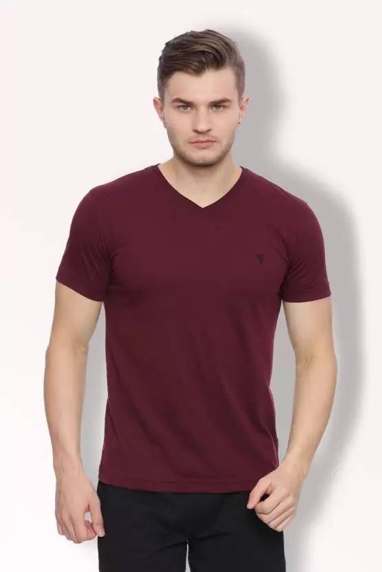 Men Solid Round Neck Cotton Blend Brown T-Shirt