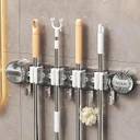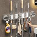 • Wall-Mounted Mop & Broom Organizer,Heavy Duty Suction Cup Cleaning Rack with Hooks,No-Drill Tool Storage Rack