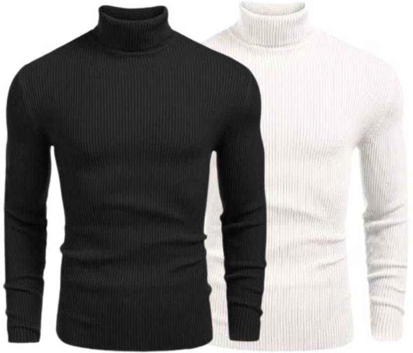 R ARHAN Men Solid Turtle Neck White, Black Sweater