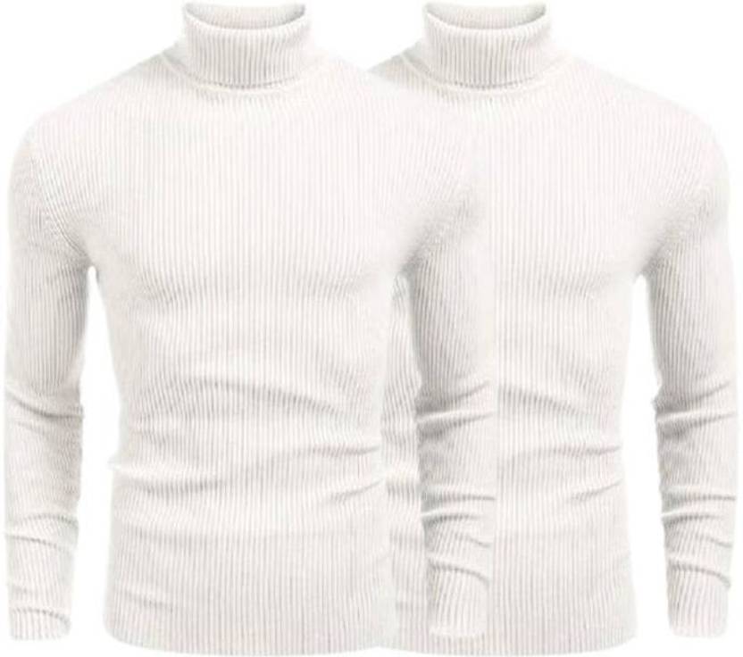 R ARHAN Solid Turtle Neck Casual Men White, White Sweater