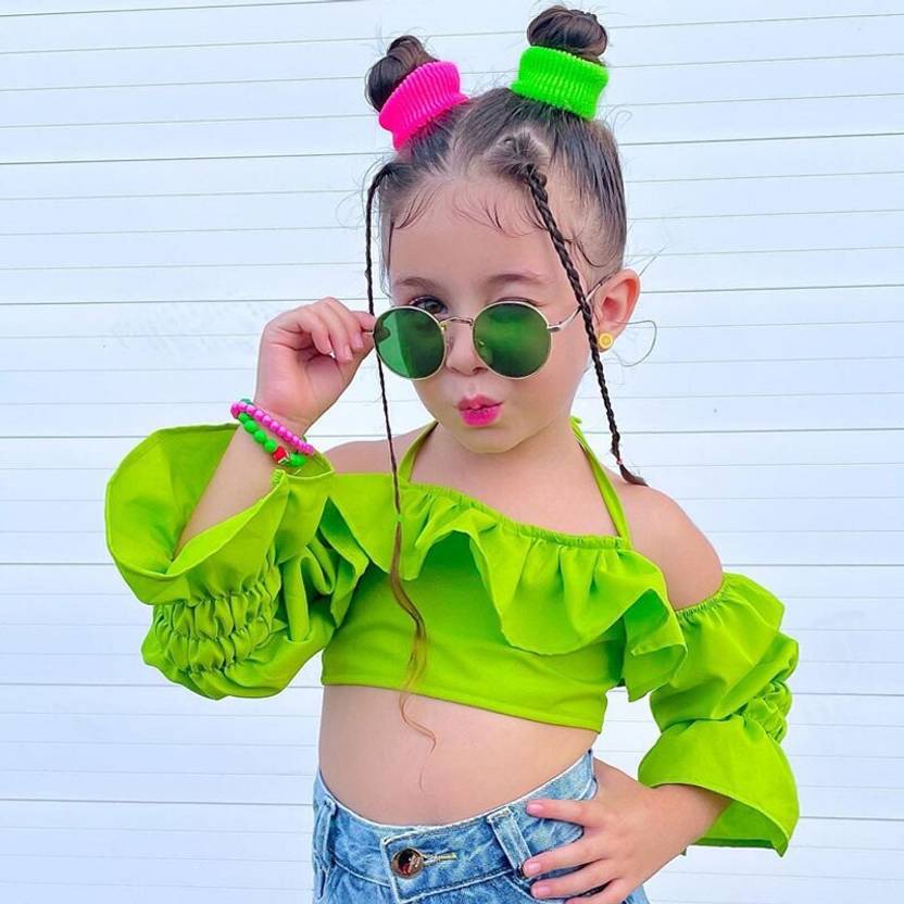 Girls Casual Crepe Crop Top (Green, Pack of 1)