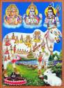 R Enterprise Hindu Religious Kamdhenu Cow with Calf || Brahma Vishnu Mahesh/Shiva Giving Blessing || Unframed Wall Poster (300 GSM Paper, 12 x 18 inch) (White) Photographic Paper (2 inch X 12 inch)