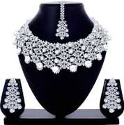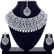 RA Enterprises introducing Bridal American Diamond heavy jewellery set combo with Earring for Women and girls. This stunning American Diamond heavy jewellery set is the perfect accessory for any woman, bride or girl. With its intricate design and high-quality materials, it will add a touch of elegance and glamour to any outfit. Elevate your style with this beautiful set.