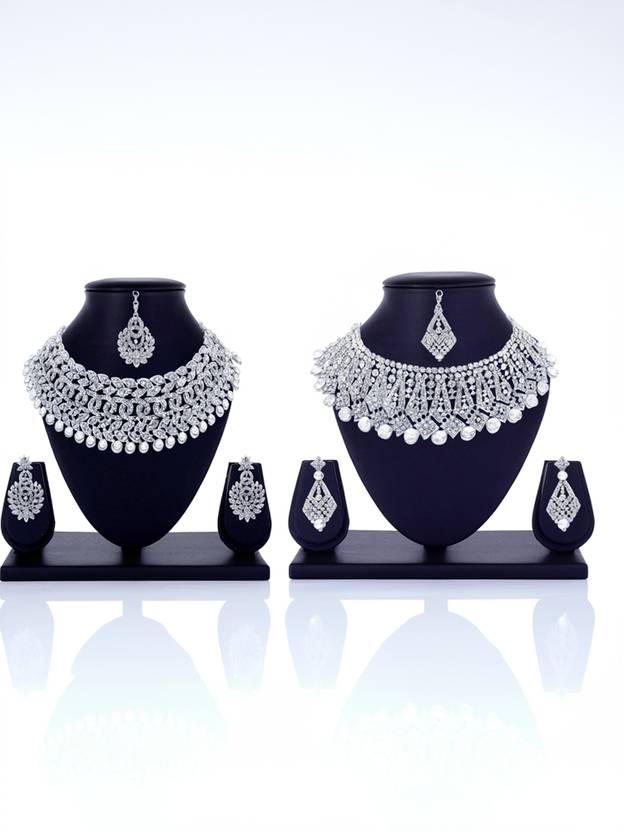 R A Enterprises Alloy Rhodium White Jewellery Set (Pack of 2)