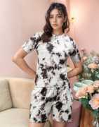 Elevate your nighttime comfort with our chic Black & White Tie-Dye Short Nightdress. This stylish nightdress combines modern tie-dye patterns with a relaxed fit, ensuring you look fashionable even while lounging or sleeping. Perfect for cozy nights in, this short nightdress for women offers both comfort and style.