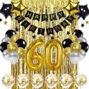 60th birthday black gold banner and balloon 42pcs set for birthday decoration