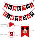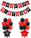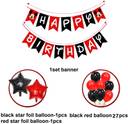 27 pcs of black and red balloons, 1 pc of black star foil balloon, 1 pc of red star foil balloon, 1 set of mickey mouse theme birthday banner