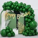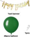 48 pcs of emerald dark green balloons, 1 pc of arch, 1 set of gold happy birthday cursive banner.