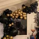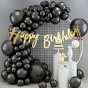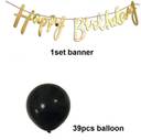 39 pieces of black balloons, 1 piece of golden cursive happy birthday banner.