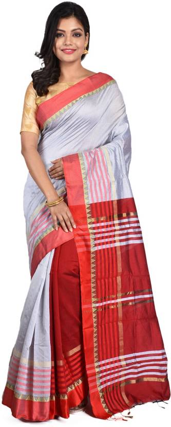 Striped Maheshwari Pure Cotton Saree (Grey)