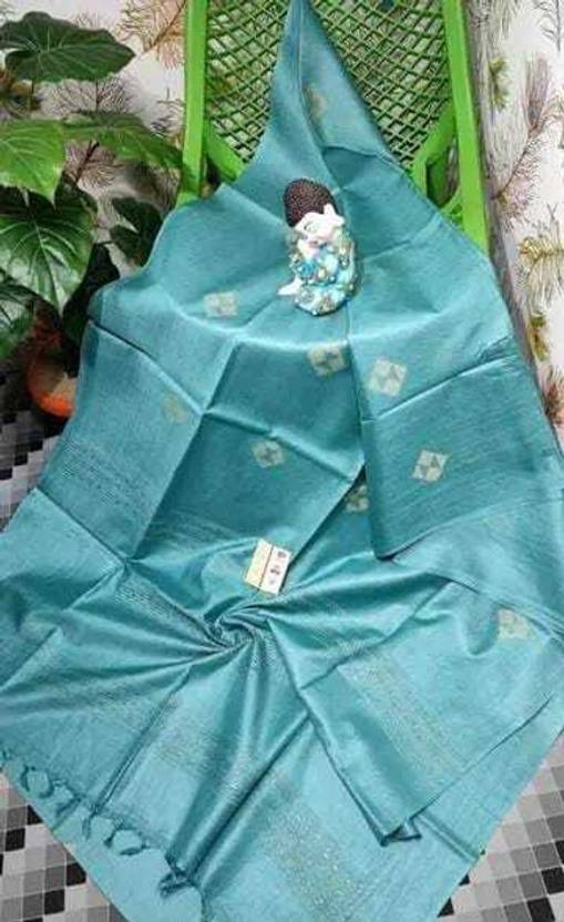 A R HANDLOOM Solid/Plain Handloom Cotton Silk Saree (Light Blue)