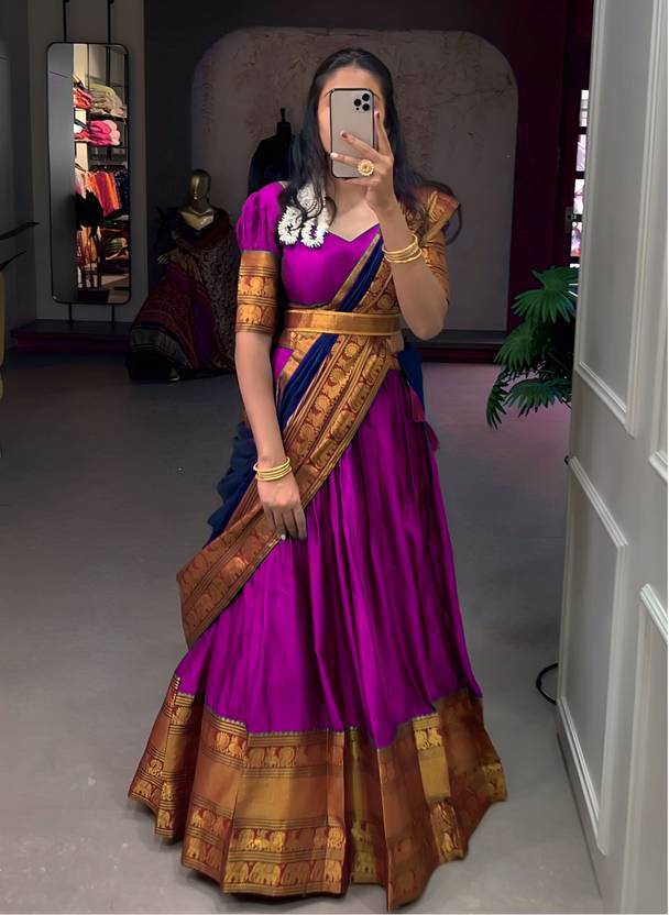 Heavy Kanchipuram South Indian Wedding Style Half Saree Lehenga Blouse & Dupatta, New Fancy Designer Traditional Lengha