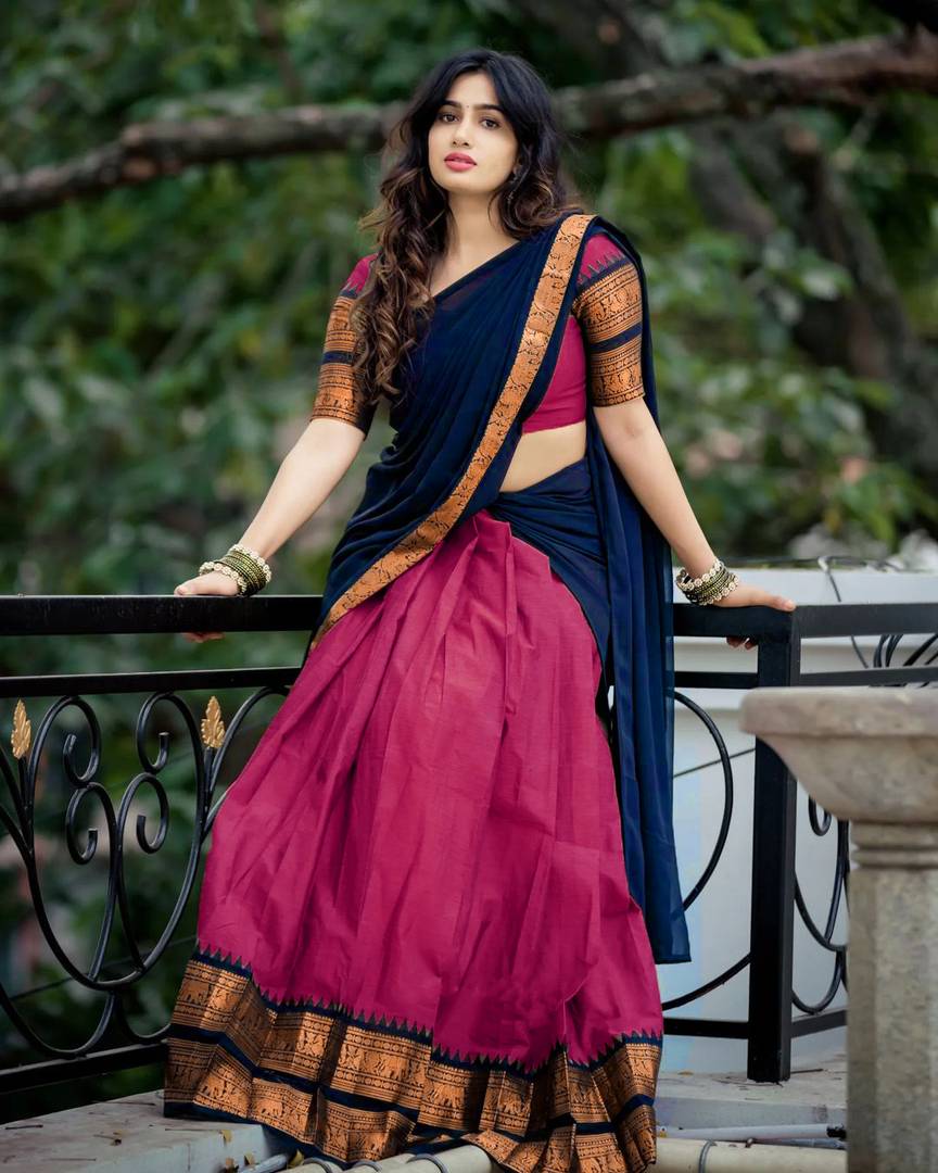 South indian Traditional Unstitched Narayanpet Half Sareee