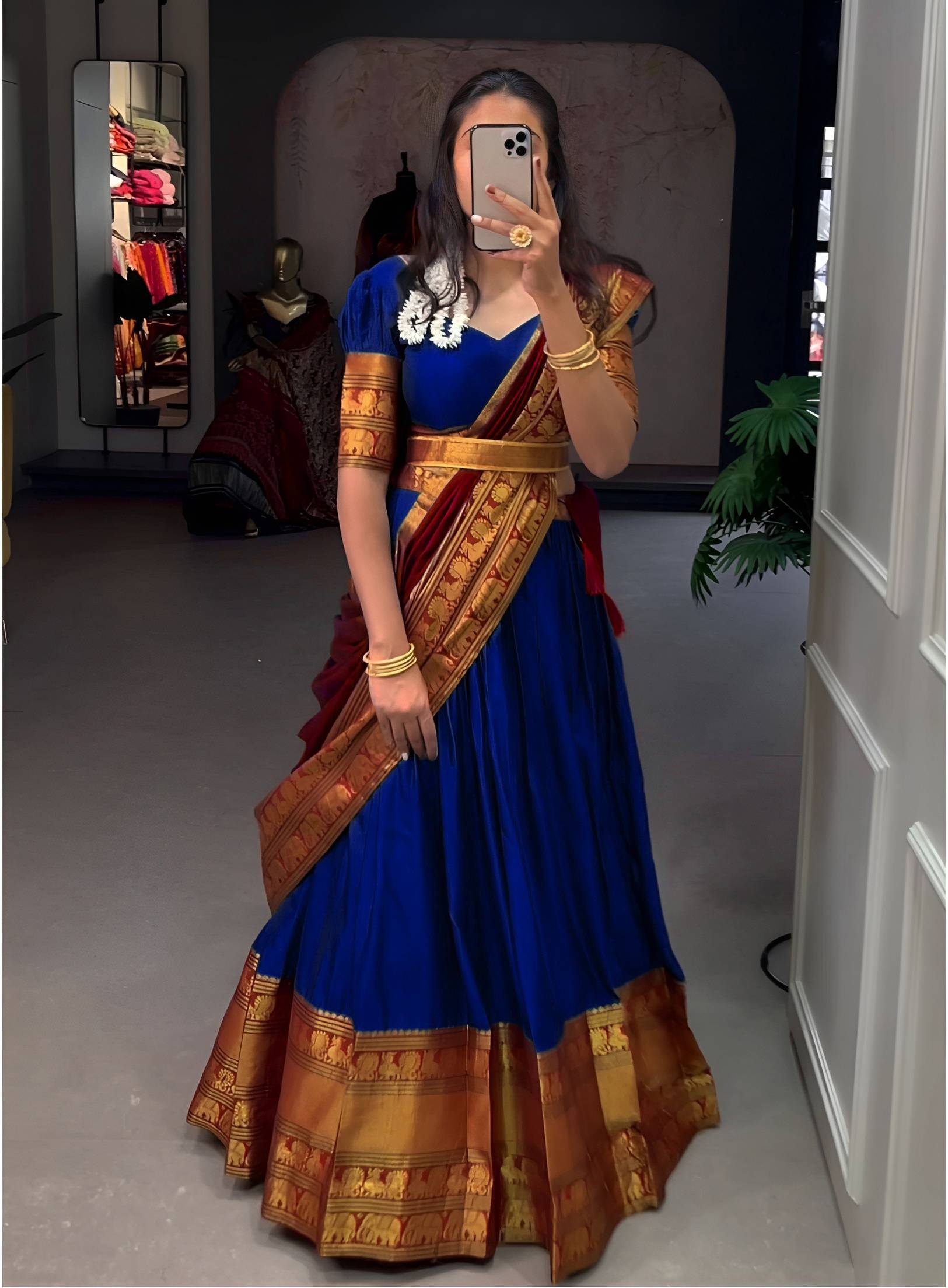 New special collection Half Saree Now In Trend 100% pure qaulity with awasome finishing work Jacquard banarasi work weaving multiple colores Unstitched lehanga Unstitched blouse along with heavy Unstitched Duppt. heavy kanchipuram jari weaving border (0.85 M) Blouse : cotton fabric with kanchipuram jari weaving border (2.25 M)Dupatta: jari weaving border colores Unstitched (3.5M) lehanga Ready Stock with Good qulity Book fast PRIMIUM QVALITY.