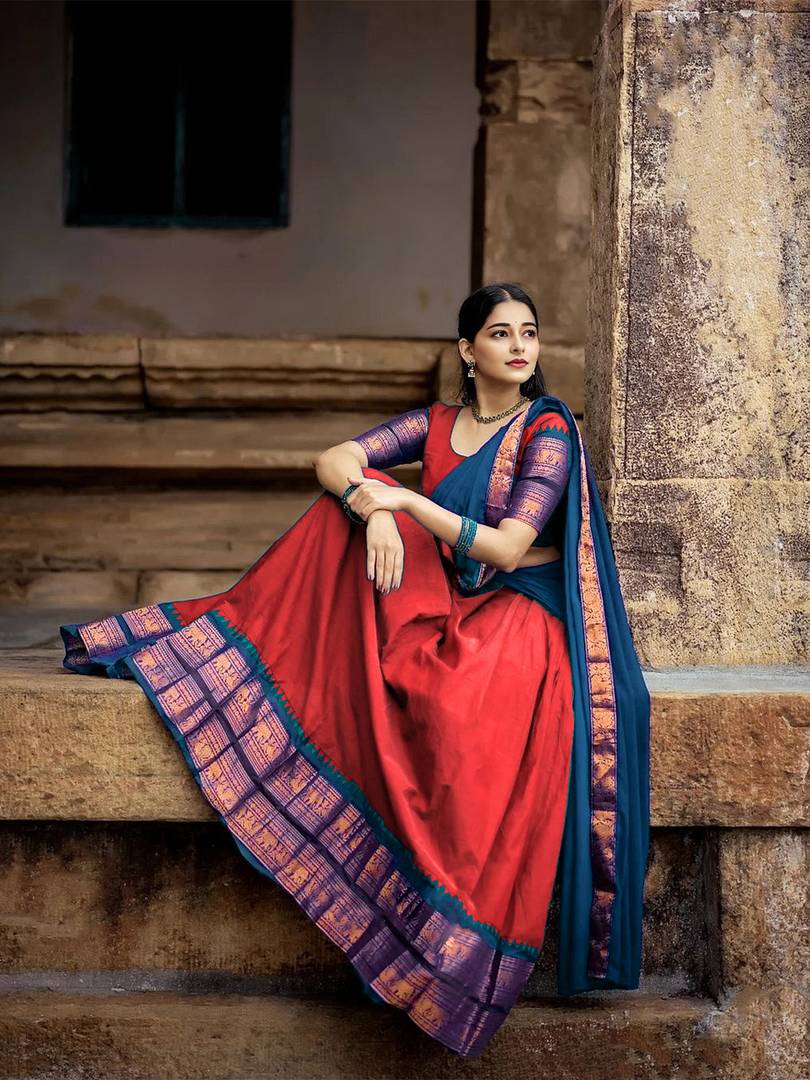 Un-Stitched Design South indian Traditional Unstitched Narayanpet Half Sareee