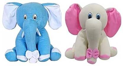 R k Lovely Blue Elephant & White Elephant Soft Toy for Kids - 30 cm (Multicolor)