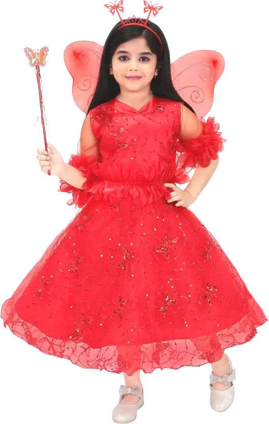 Stylish Pari Dress with Wings, Hairband & Stick (1W)