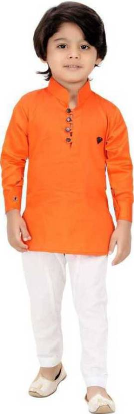 Make your boy look like prince by buying him this Indo Western set from bitu fashions. Made from fine quality Cotton fabric, this boys ethnic wear set comprises Kurta & pajama set. The kurta has nehru collar that makes your boy look all the more stylish and give him perfect traditional look. The fit is regular for boys and comfortable for kids. This boys ethnic dress is ideal for the special parties, functions, festival, wedding and other occasion. Club it with a pair of mojaris for perfect traditional look.