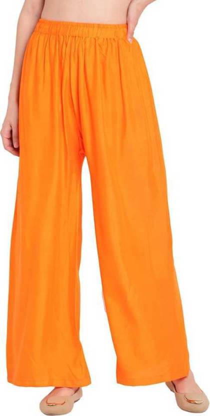 R L Fashion Women Flared Orange Viscose Rayon Trousers