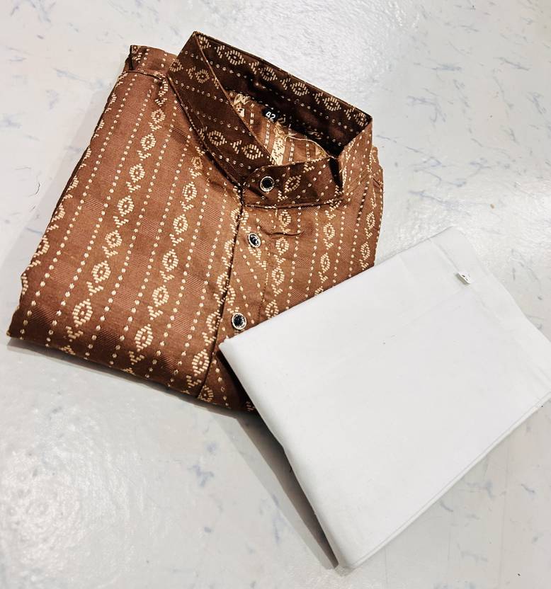 This luxury traditional Indian kurta pajama 2-piece set includes a top (kurta) and a bottom. Loose fitting sleeves and slits along the sides allow for an easy fit and let air circulate freely through the garment. The pant included in this kurta pajama set has a relaxed fit through the seat and legs for absolute comfort. Loose comfortable fitting makes it a great wear.