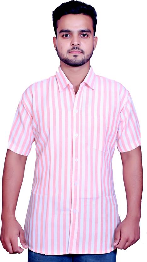 r n Men Striped Casual Pink, White Shirt