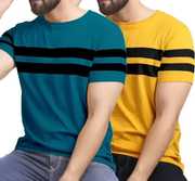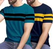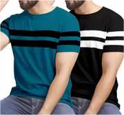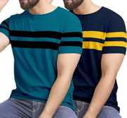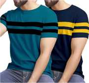 R RIDACHY Striped Men Round Neck Dark Green T-Shirt