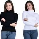 R ROCKIN TEES Women Solid High Neck Black, White Sweater