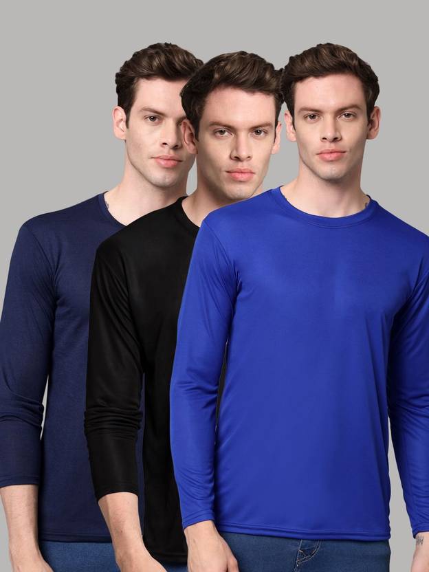 InkTees Solid Men Round Neck Blue, Black, Navy Blue T-Shirt