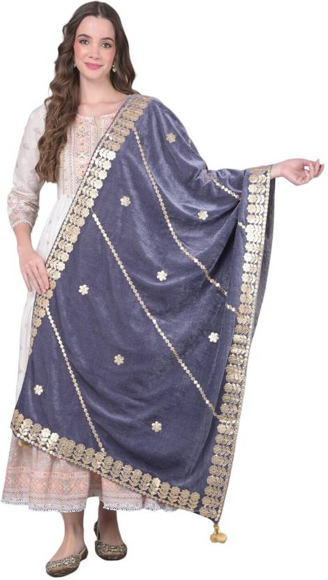 Add a touch of elegance to your wardrobe with this exquisite piece of splendid velvet Dupatta. Swathed with gotta pati borders and lovely gotta pati work embroidery, this versatile stunner is a must in your collection.