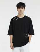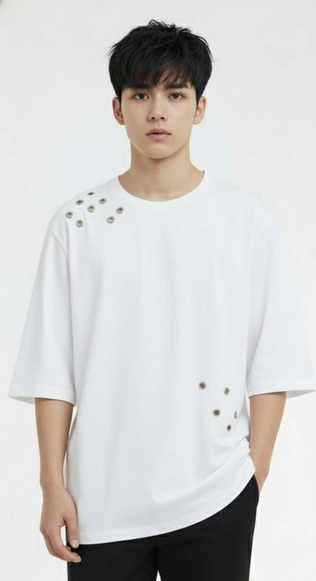 Step up your casual wardrobe with this trendy oversized white T-shirt featuring stylish metallic eyelet accents on the shoulder and lower side. Crafted from premium cotton blend fabric, this T-shirt offers superior comfort, breathability, and a relaxed streetwear aesthetic. Perfect for daily wear, hangouts, or casual outings