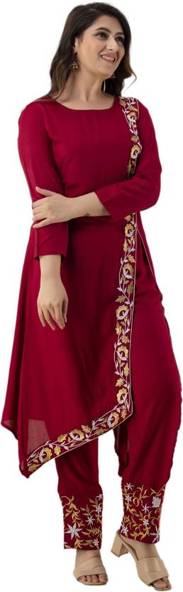 The kurta and the pair of pants have been made with viscose rayon fabric. The fabric has a soft and smooth texture which can feel easy on the skin. As a result, you can wear this ensemble for an extended time without any hassle. Viscose rayon is also highly breathable, keeping you comfortable in varied weather conditions.