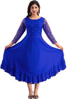 RA CREATION Women Solid Anarkali Kurta (Blue)