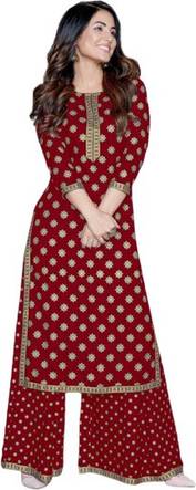 Thanks to its solid pattern and intricate small embroidery motifs on the bodice, this kurta exudes understated elegance. The full embroidery on the sleeves adds an eye-catching touch, while the delicate ruffle detail along the bottom enhances its feminine appeal. These features come together to create a traditional yet modern look, ideal for a range of occasions.