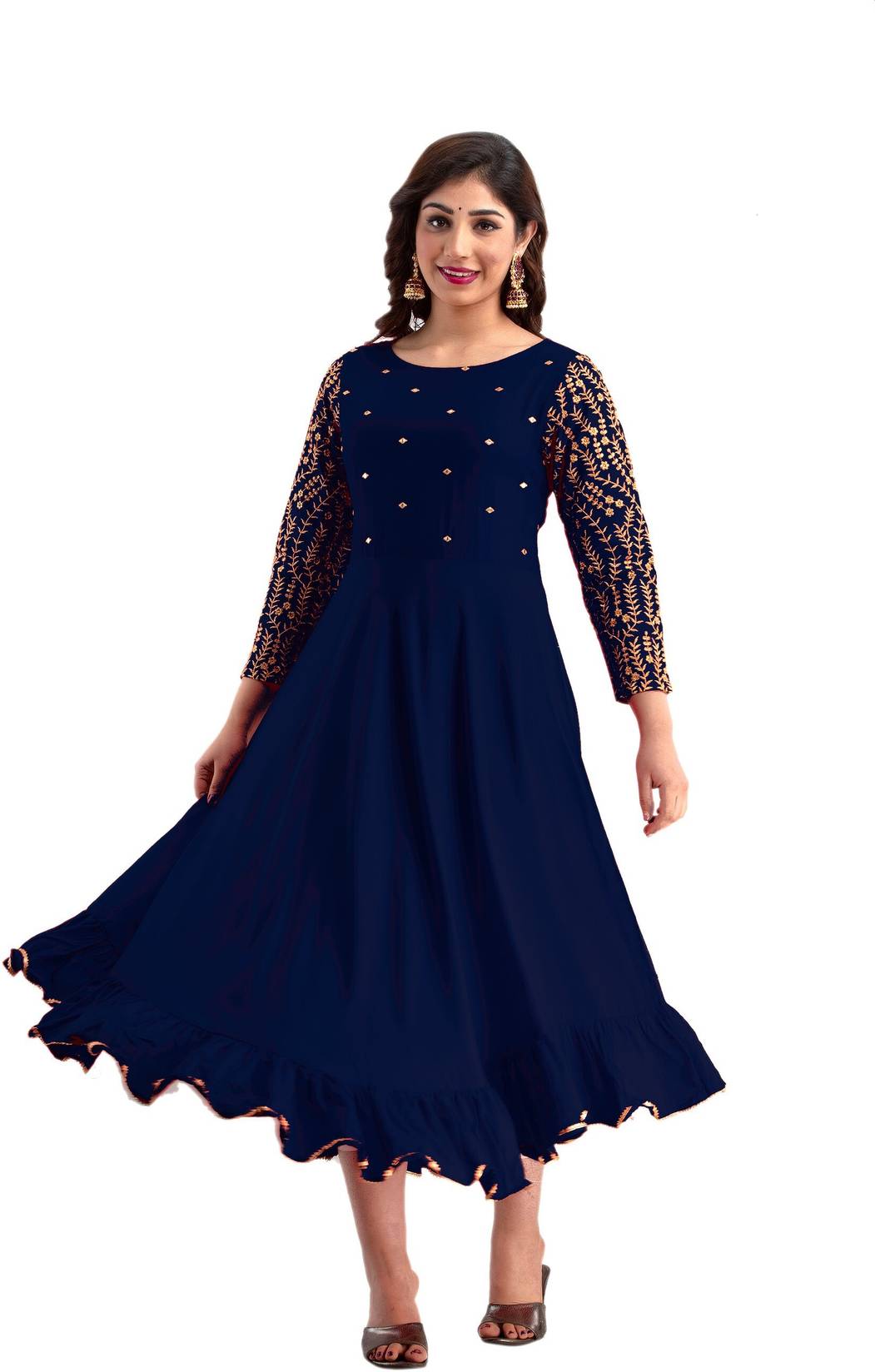 RA CREATION Women Solid Anarkali Kurta (Dark Blue)