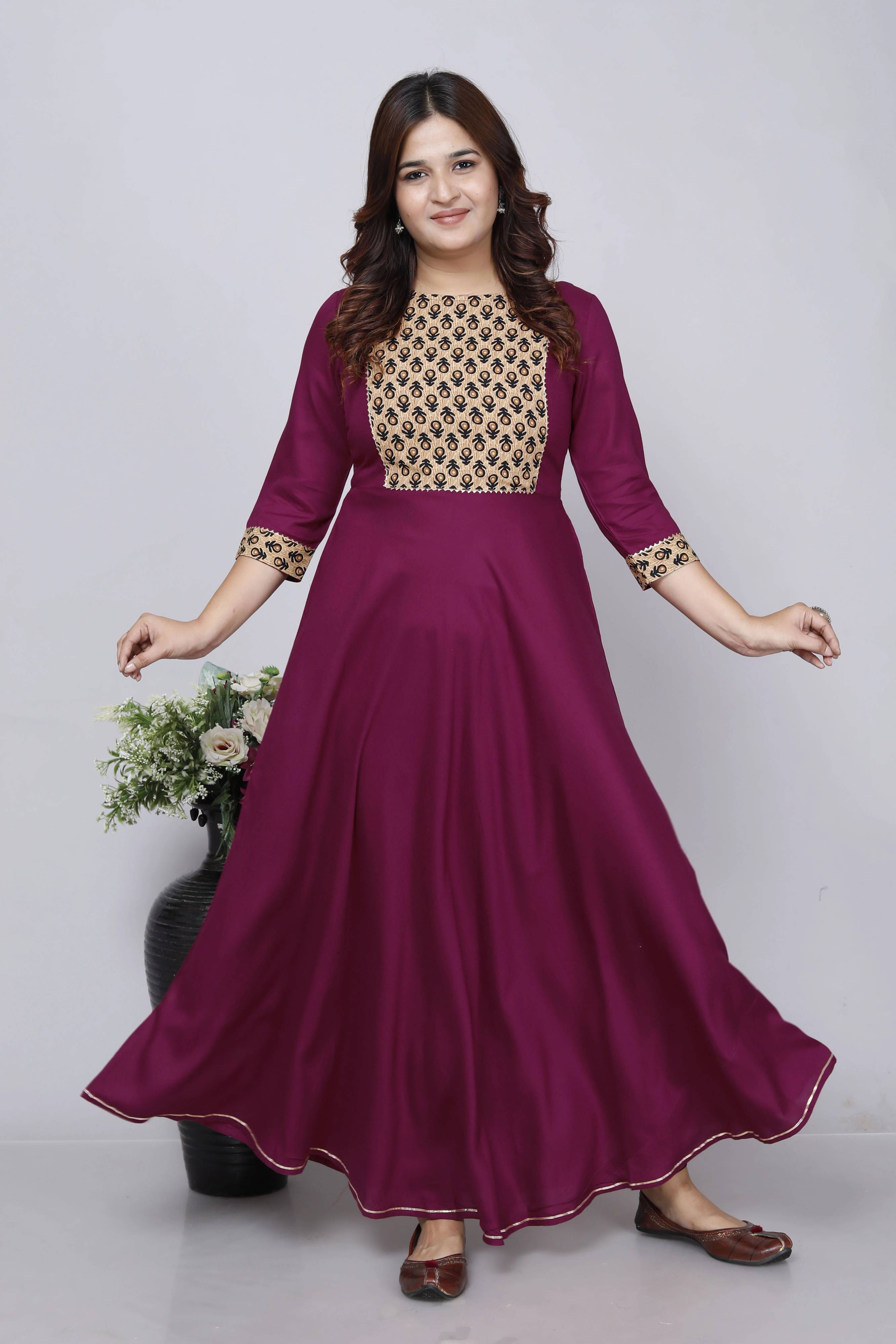 RAAKA Launched beautiful, classy & Glamorous Ethnic Collection. This dress is a mix-up of smartness and grace. Here’s solid maroon ethnic kurta with good combination of beige pattern are made up of 100% pure rayon fabric which will give you lot of comfort & look very attractive. This ethnic wear is delicate in weight and perfect for daily wear. This can be worn at festive, party or wedding also. Wear this set with the contrast high pumps and metal jewelry.