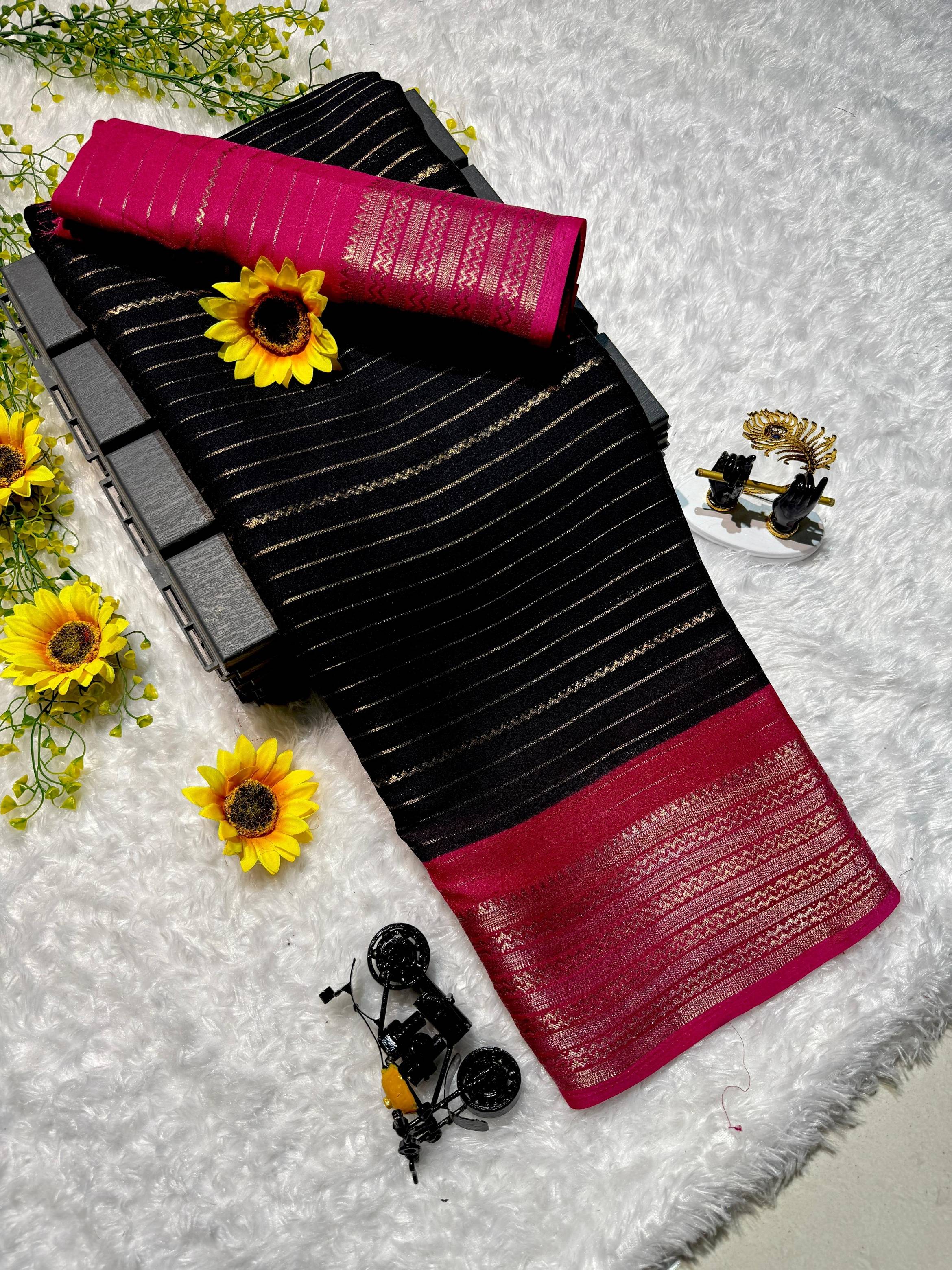 Zari border, Shimmer Silk Sarees, Silk, Stylish Stripes