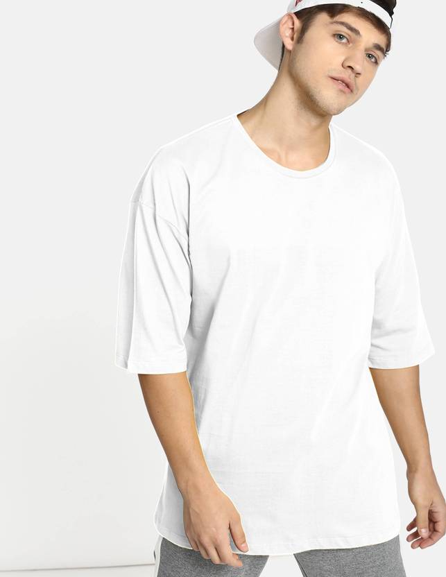 Men Solid Round Neck Pure Cotton White T-Shirt