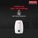 Safety is a priority with this water heater. It is designed with a fire-retardant cable that adds an extra layer of security. Additionally, it has a rust-resistant body made of polypropylene, further contributing to its durability. These safety measures ensure the water heater remains safe for use over an extended period.
