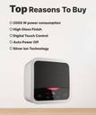 The water geyser's body is constructed from high gloss PP material, which adds to its aesthetic appeal and durability. This robust material is rust-resistant, ensuring a longer-lasting appliance. The high gloss finish not only enhances the look but also makes it easy to clean and maintain, requiring minimal effort to keep it looking pristine.
