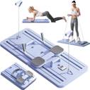 Multifunctional All-in-One Pilates Equipment: Combines Pilates board, ab roller wheel, resistance bands, push-up handles, balance board, and plank features for a comprehensive full-body workout suitable for all fitness levels and goals like body shaping, fat loss, and flexibility.