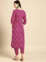 Featuring a round neck and three-quarter sleeves, this kurta provides a comfortable and flattering fit. The straight, calf-length cut of the kurta adds a chic touch while offering ample coverage. The pant is designed with an elastic waist, ensuring a flexible and comfortable fit that adjusts to your body shape. This set combines practicality and style, allowing for easy movement throughout the day.