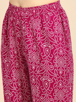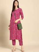 Thanks to its printed pattern, this women’s kurta pant set brings a lively and modern touch to any wardrobe. The design adds a distinctive flair, making it a versatile choice for both casual outings and more formal occasions. This pattern pairs effortlessly with various accessories and footwear, making it adaptable to different settings and events.