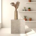 Radha Impex Modern Cube Pedestal Side Table with Faux Stone Wood Finish Solid Wood Side Table (Finish Color - Beige, Pre-assembled)