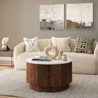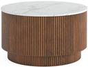 Radha Impex Wooden Round Coffee Table For Living Room With Storage Engineered Wood Coffee Table (Finish Color - Top White, Base Brown, Pre-assembled)