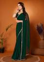 This elegant designer saree comes with refined mirror-style detailing on the border, giving it a premium festive and party wear appeal. The lightweight drape offers a comfortable fit for long hours and enhances the overall graceful fall of the saree. The blouse is crafted in a stylish sleeveless pattern for a modern ethnic look, making it ideal for weddings, parties, receptions, festivals, and special occasions. Its ready-to-style design makes it easy to wear while maintaining a rich and classy appearance. Perfect choice for women who want a fashionable saree that blends tradition with contemporary style.