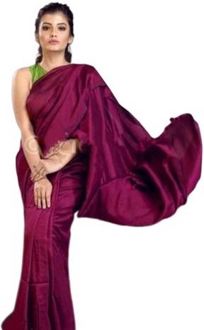 Radha Krishna Saree Solid/Plain Handloom Cotton Silk Saree (Magenta)